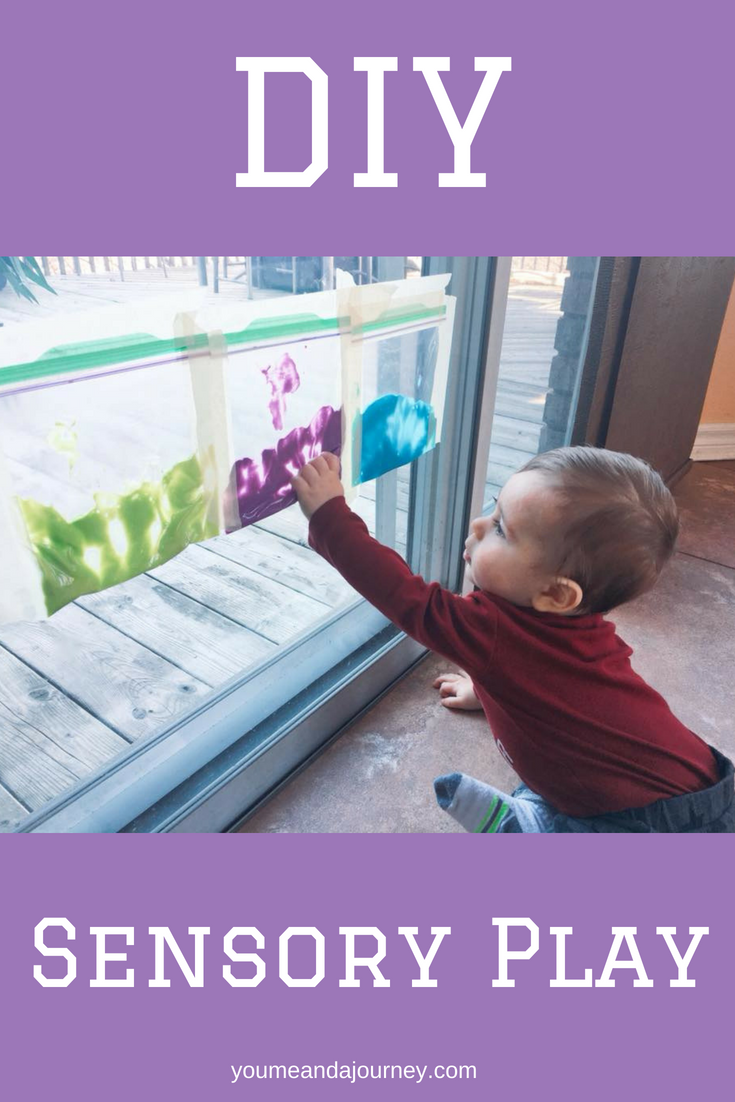 DIY Sensory Play As a first-time mom, I am always worried about if my son was learning enough and hitting those milestones. I was ( or am ) always looking everything up… when should he be doing this.. or he be doing that. Well, I took it upon my self to figure out fun ways to integrate sensory and motor skills into safe creative play. So I found some great ways to engage him in safe fun sensory activities. I am always concerned about what Noah is putting in his mouth and on his skin, so I came up with a way for him to learn his colours and engage…